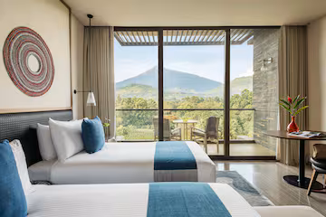 The hotel features spacious, elegantly appointed rooms and suites, many with private balconies and garden or mountain views. Each room is equipped with modern amenities, including air conditioning, high-speed Wi-Fi, minibars, and tea/coffee facilities. Guests can enjoy multiple dining options, relax by the outdoor infinity pool, rejuvenate at the full-service spa, or stay active in the fitness centre. Meeting and event spaces, as well as attentive guest services, ensure a seamless and comfortable stay.